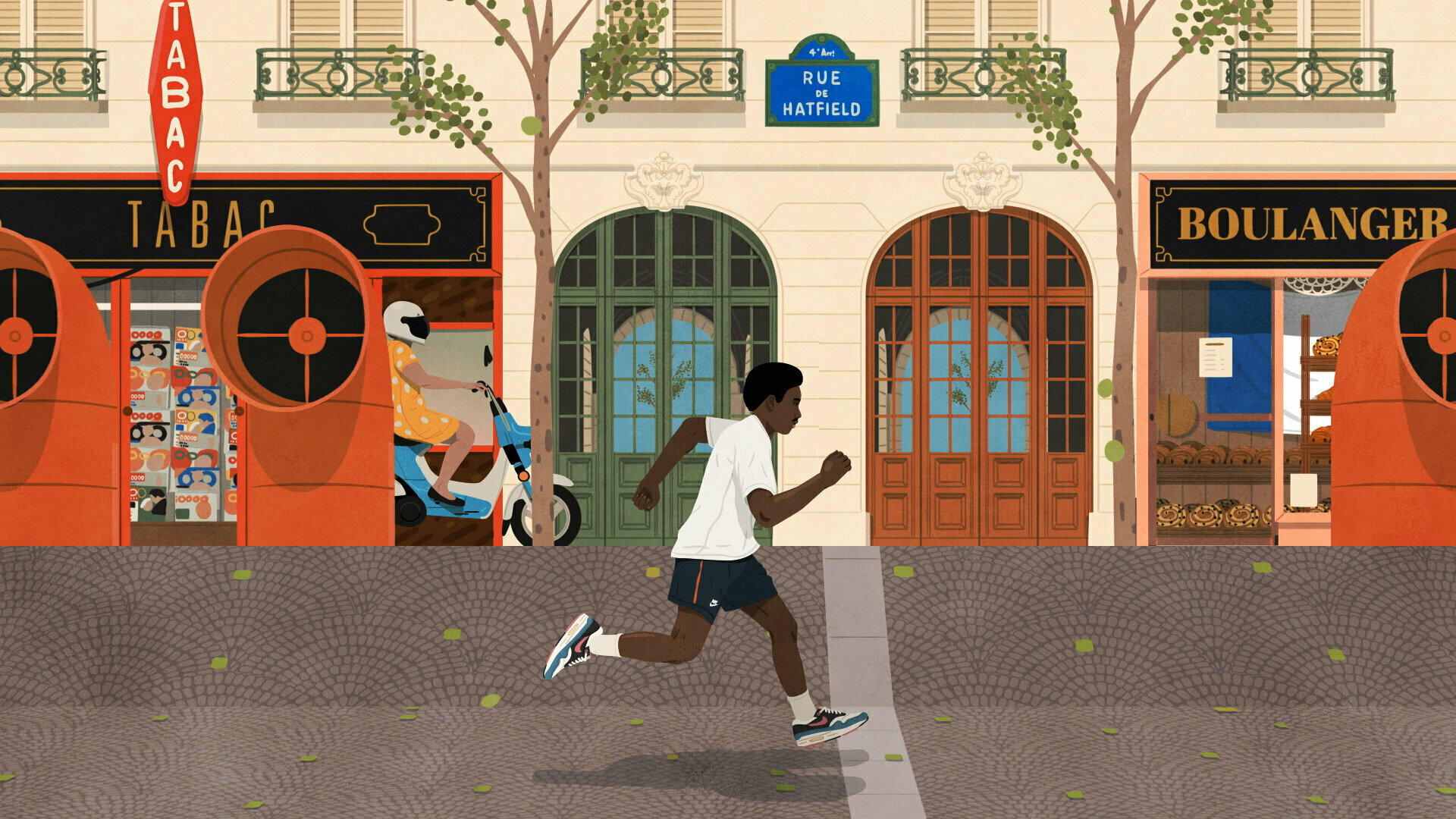 A lo lejos, vemos un escaparate con promociones tentadoras, mientras que del suelo, justo bajo sus pies, empiezan a dispararse moneditas que siguen su ritmo, como si todo el mundo estuviera a su servicio.