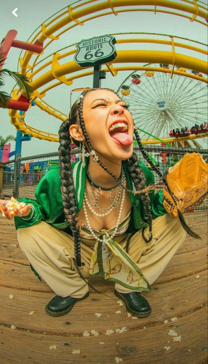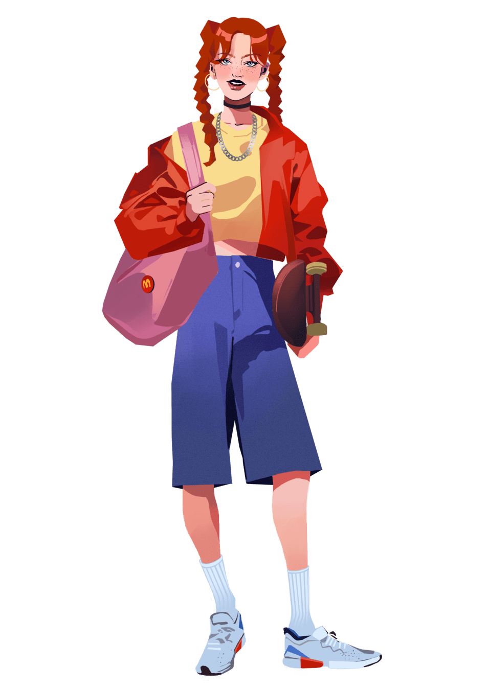 Alicia es una chica de 23 años, auténtica y rebosante del espíritu rebelde de su generación. Su playlist es tan ecléctica como ella: un día vibra con el último tema de Travis Scott y al siguiente explora las atmósferas de Tame Impala. En su vestuario, mezcla prendas vintage con piezas actuales, combinando ropa oversize con accesorios llamativos y detalles inesperados. Suele moverse por la ciudad en su skate. Le apasionan la música y el arte, especialmente todo lo relacionado con el arte urbano, el muralismo y la ilustración.