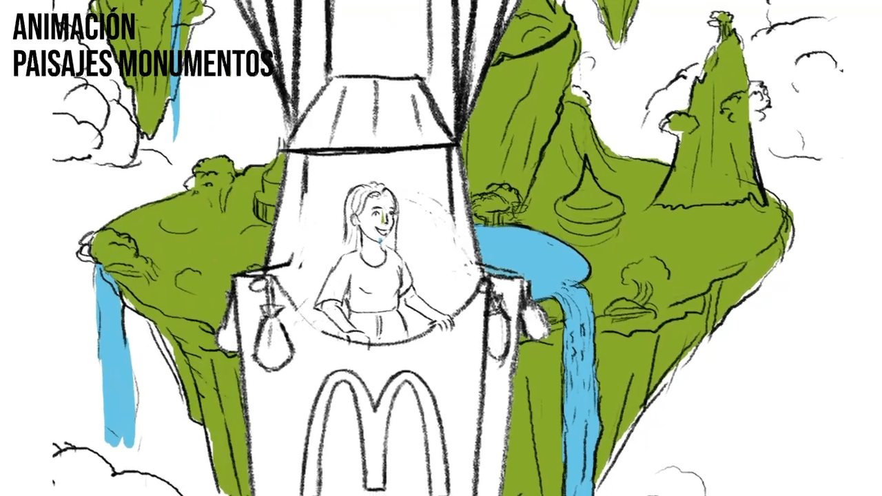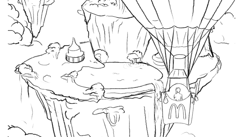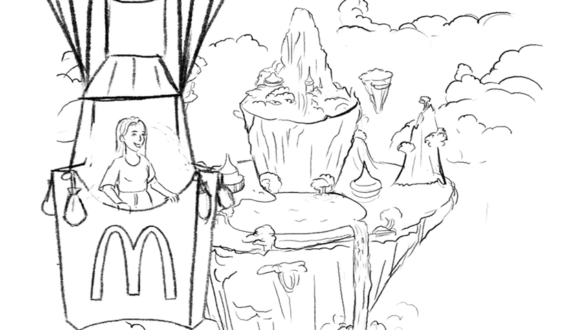Aunque hablo de Alicia como nuestra protagonista, tengo claro que el verdadero protagonista es la app MyMcDonald's y esos mundos que crearemos para representarla. Trabajaremos con ambientes 2D animados, llenos de detalle y vida, utilizando el recurso del loop infinito para avanzar a través de ellos. Nos adentraremos en lugares inesperados, que al ampliarse generarán sorprendentes entradas hacia nuevos espacios.