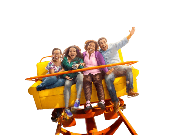En un momento, la cámara se alinea con la vía de la montaña rusa. Comenzamos a escuchar el ruido de un vagón acelerando, y de repente, ¡pam! La cámara se enfoca en el vagón y nos dirigimos directamente al centro.