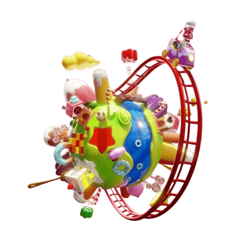 Ahora estamos en un cielo lleno de diferentes miniplanetas, cada uno con su propio mundo de atracciones. Algunos planetas representan videojuegos, otros deportes. Algunos son pelotas de fútbol, baloncesto y tenis, mientras que otros se transforman en paradas de McFurrys, pareciendo grandes algodones de azúcar.