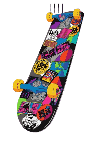 Podría avanzar por la ciudad en skate. También creo que sería interesante considerar la posibilidad de un plano lateral si queremos ver mejor laes promociones.