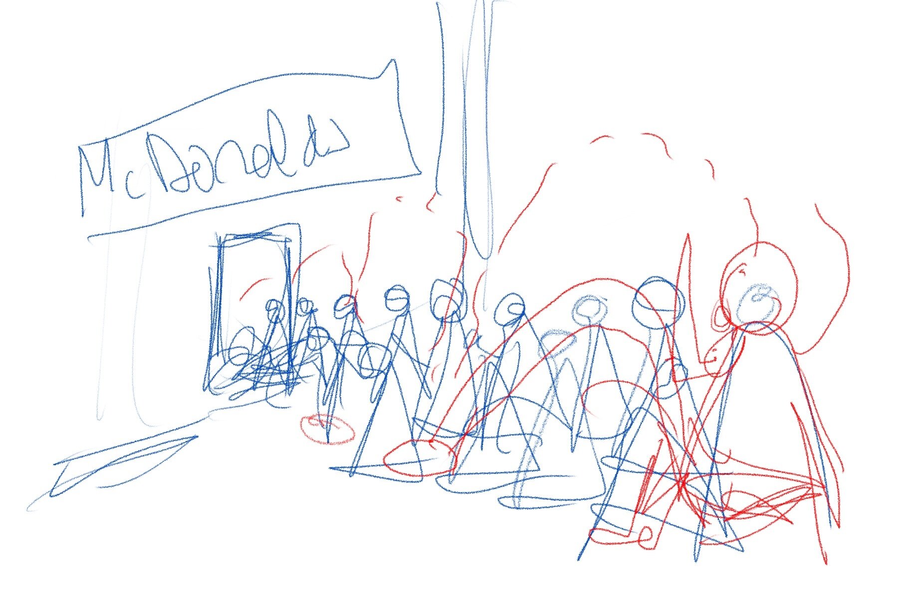 Llega hasta un restaurante McDonald's, pero para su sorpresa, está repleto de una cola interminable.