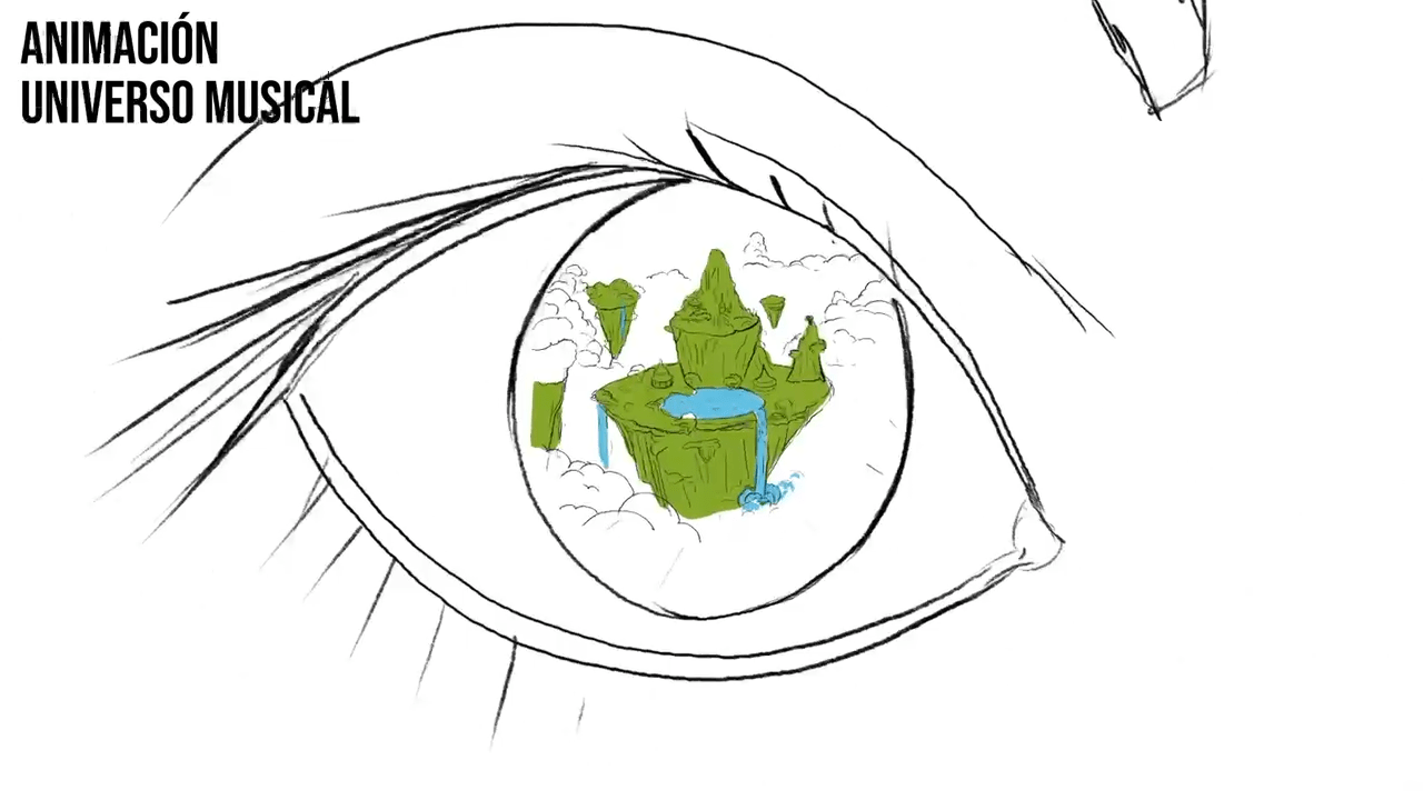 De repente, la imagen corta a una chica del público, y sorpresa... ¡es Alicia! Ella está contemplando alucinada el concierto. La cámara se acerca sin detenerse hasta su ojo, donde, en lugar de encontrarnos con su mirada, descubrimos que dentro de su pupila se encuentra el siguiente mundo. Nos metemos en él.