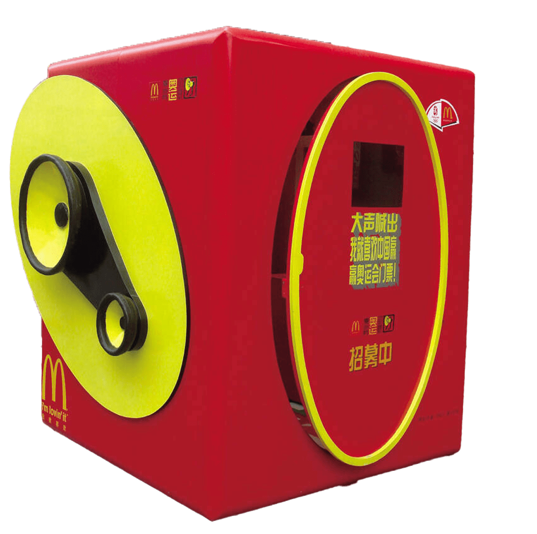 Para la promociones, optaria por usar la calle del “MUNDO McDonalds” pero la chica esta vez se dirige hacia la oferta. La oferta puede aparecer en forma de objetos gigantescos al final de la calle.