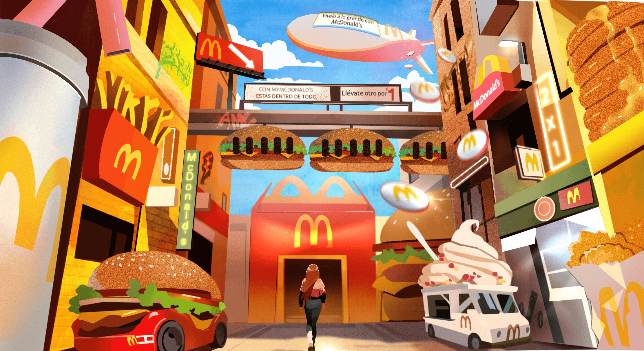 Un punto importantísimo para mí es que el look & feel general respire los colores de la marca. Tanto en el mundo real como en el universo 2D, el espectador debe reconocer claramente la identidad de McDonald's.