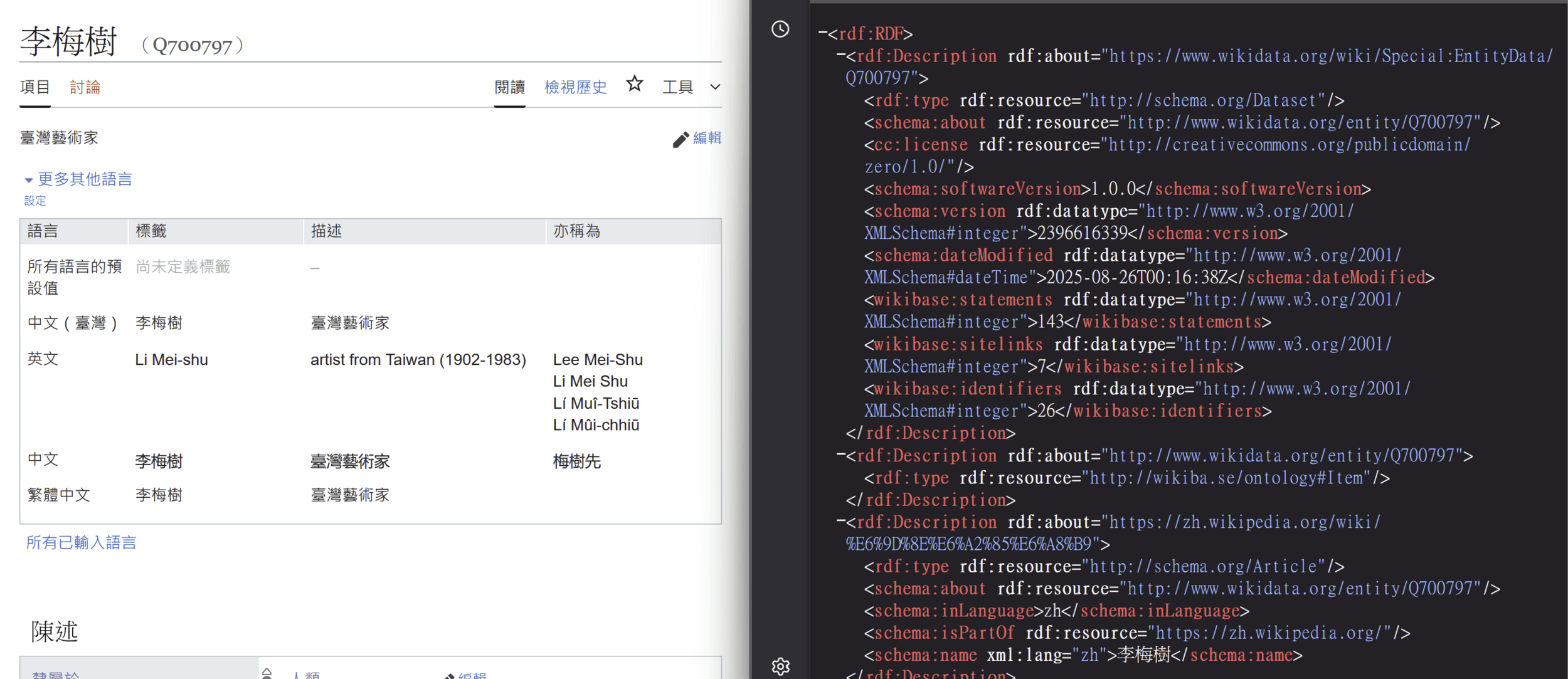 在 Wikidata 裡面我們不再用散文的方式在紀錄資料