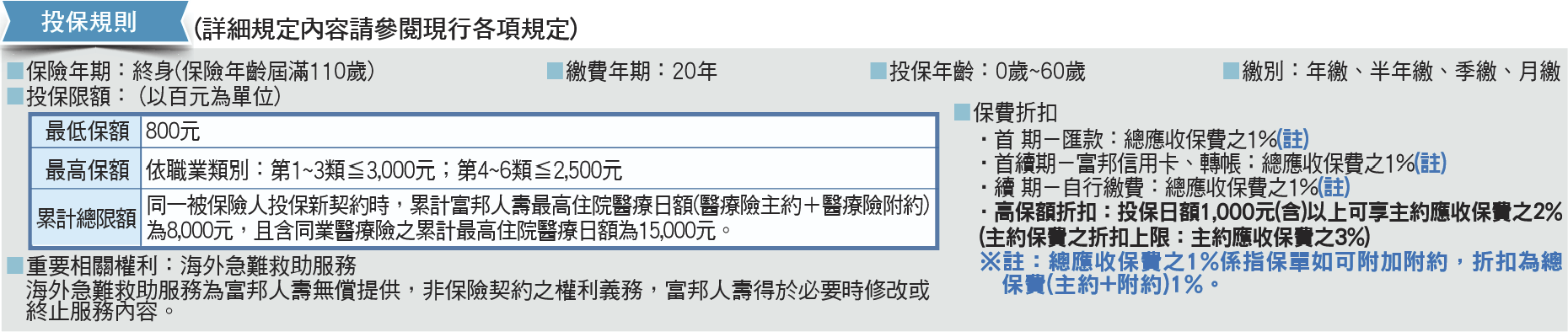 - 最高日額 3000/2000;16 ~ 60 歲可投保