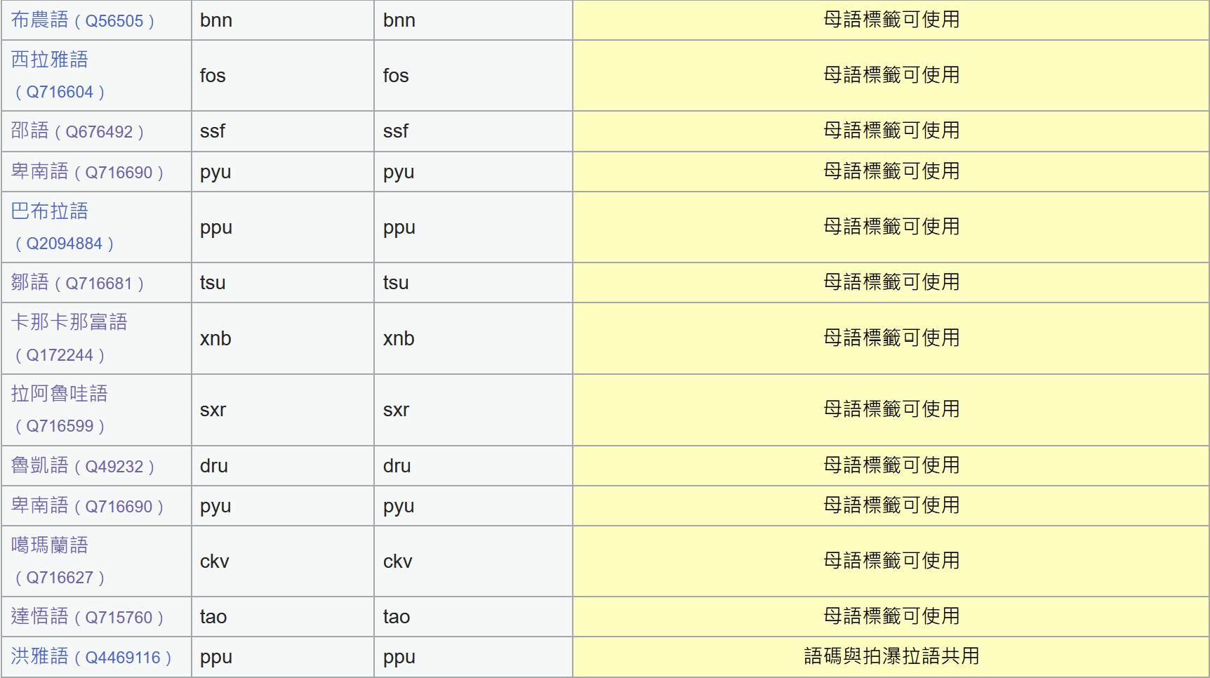 至少有 19 族南島語言在 Wikidata 中母語標籤可用