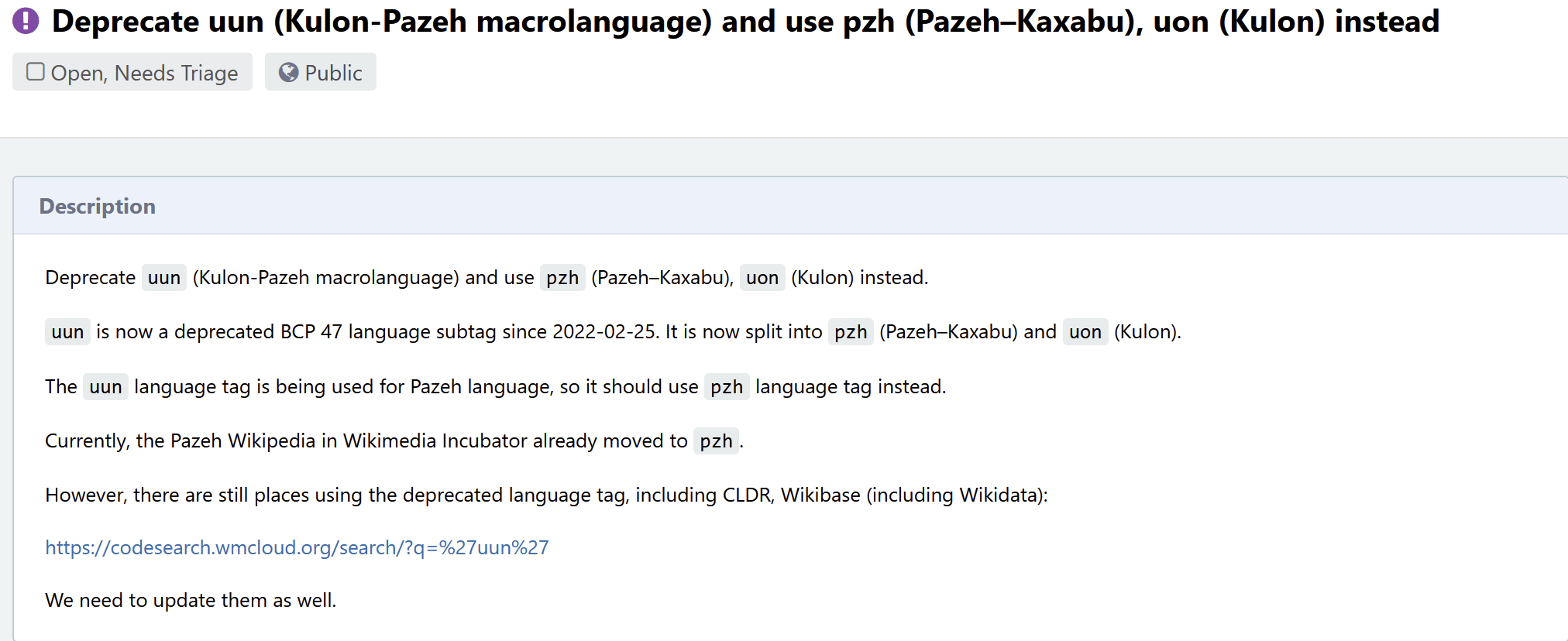 語言代碼 uun 分拆 pzh 與 uon 工作正在進行中