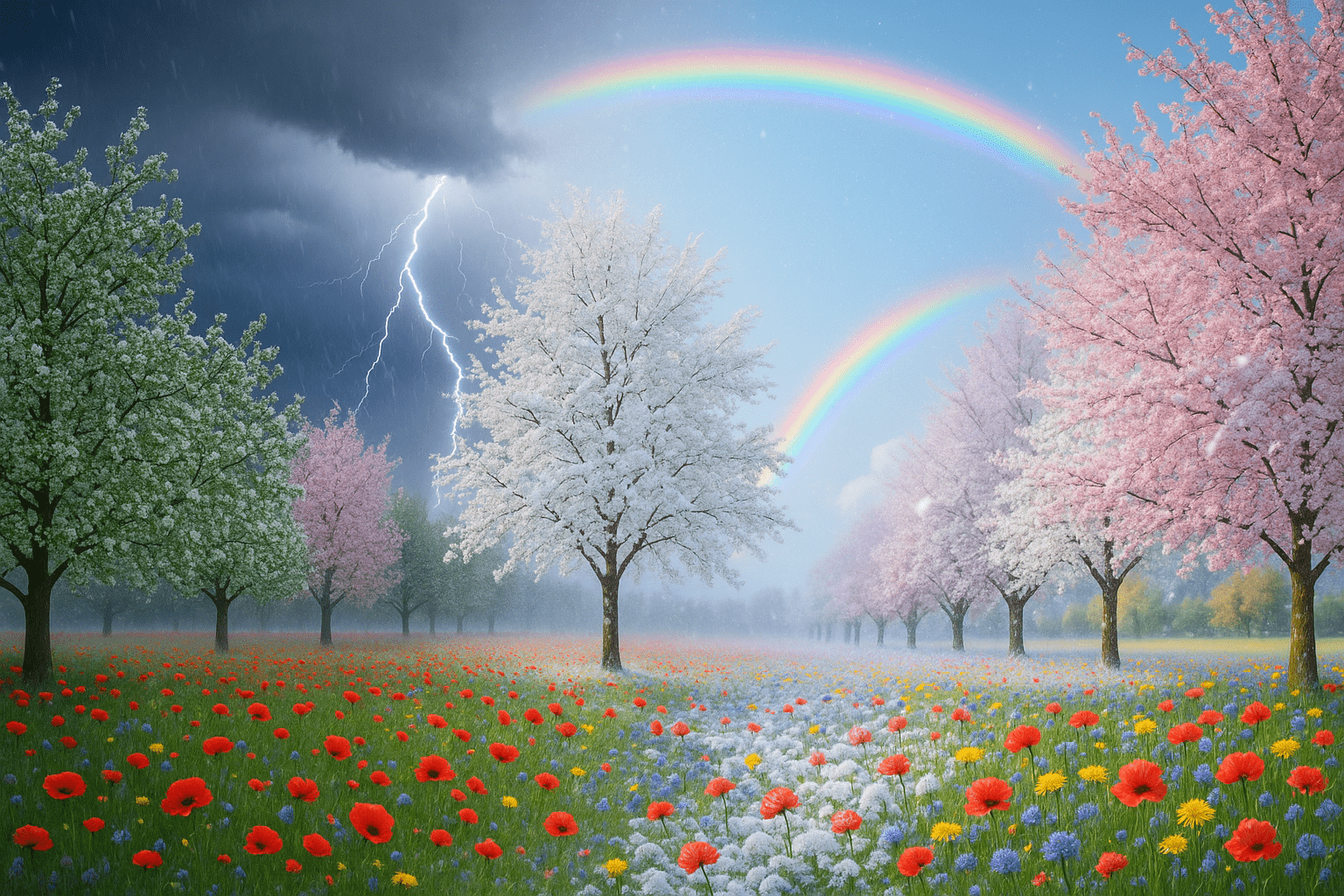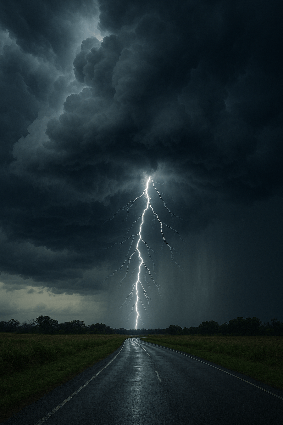when there is heavy rain, lightning, and loud thunder in the sky