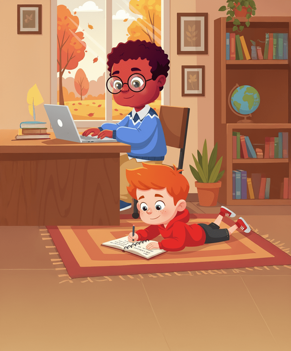 - They are doing their homework.