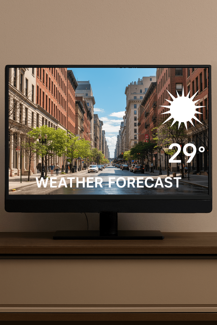It's sunny in New York, but rainy in London.