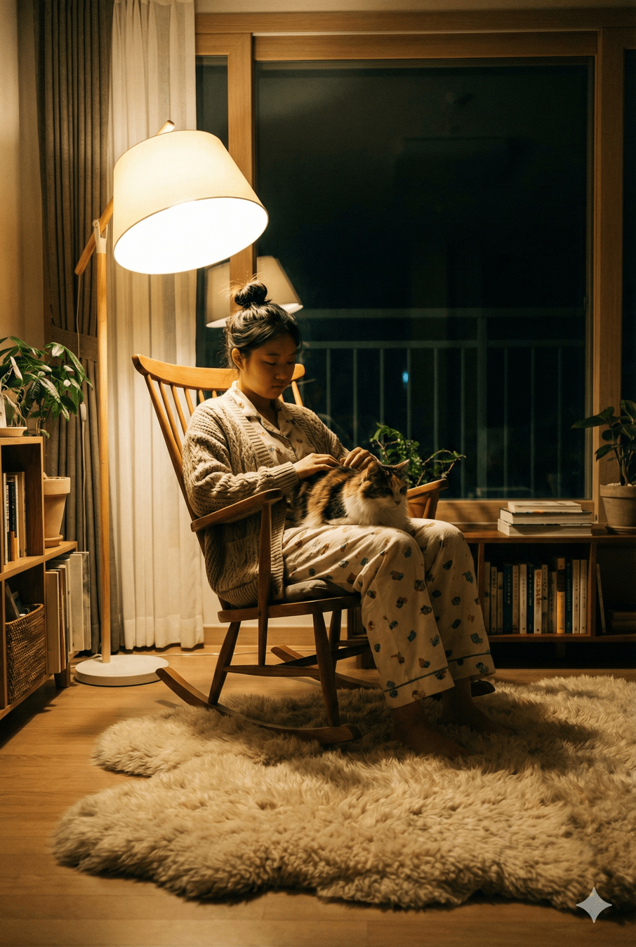 4. Lin is petting her cat. Her touch is strange/gentle.