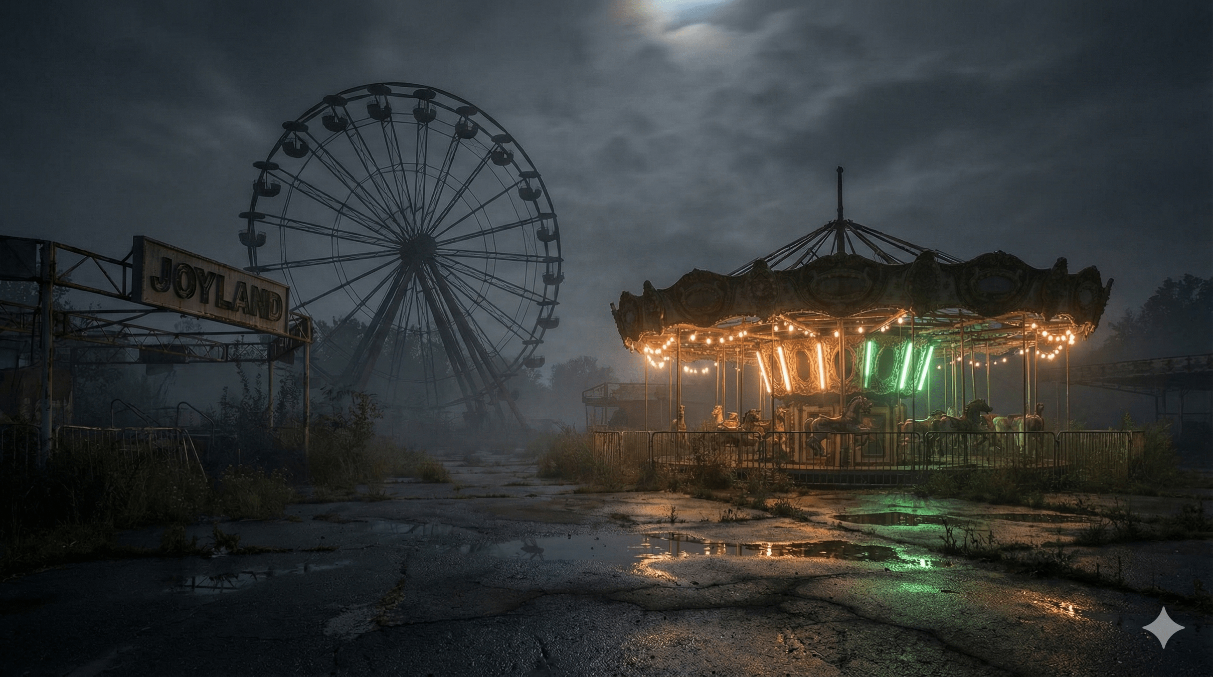 It bright and shiny, and I can colourful graffiti on the walls. This place noisy. It fresh, like clean night air.