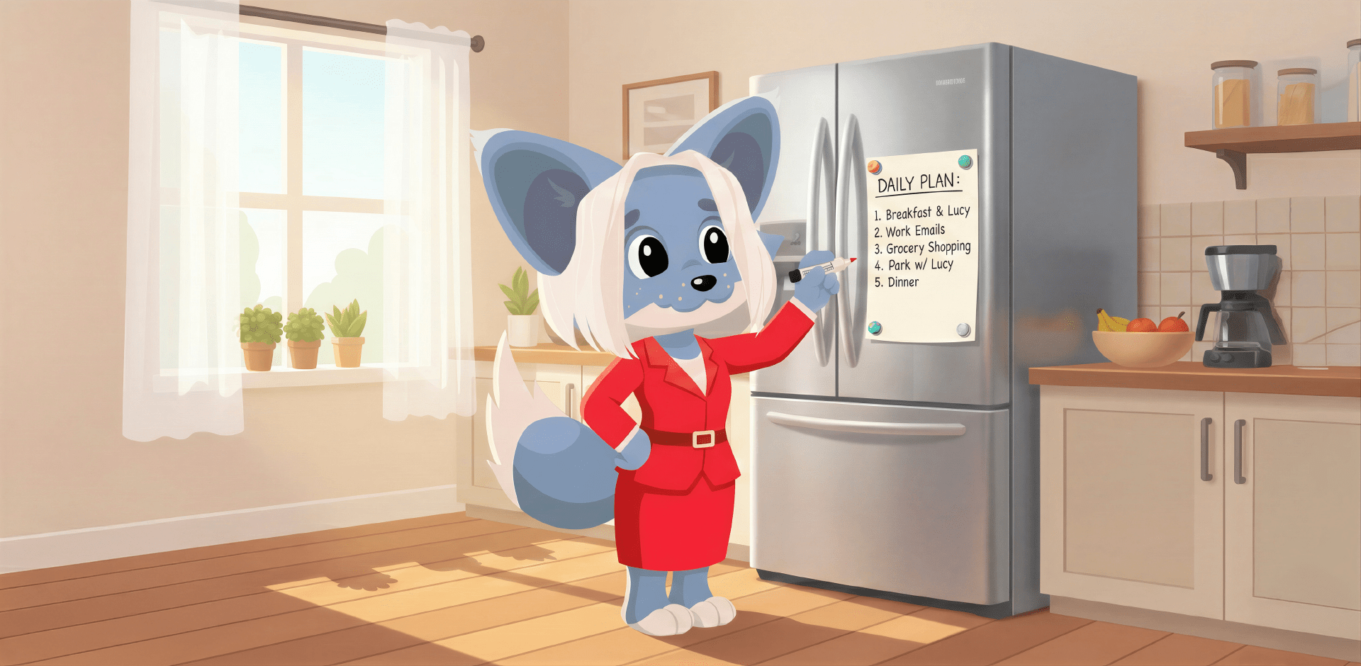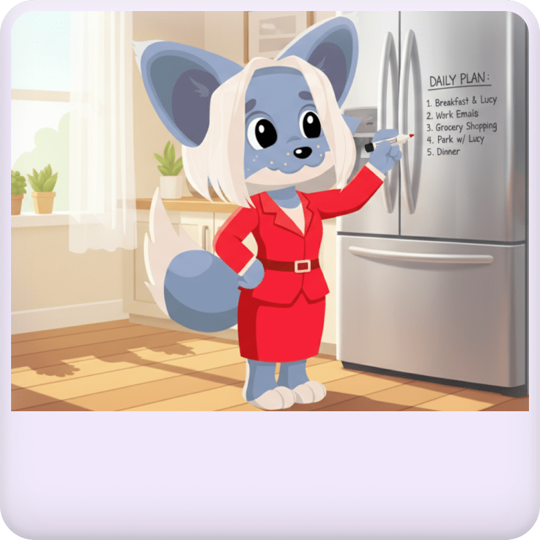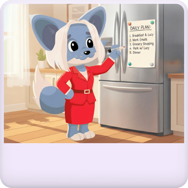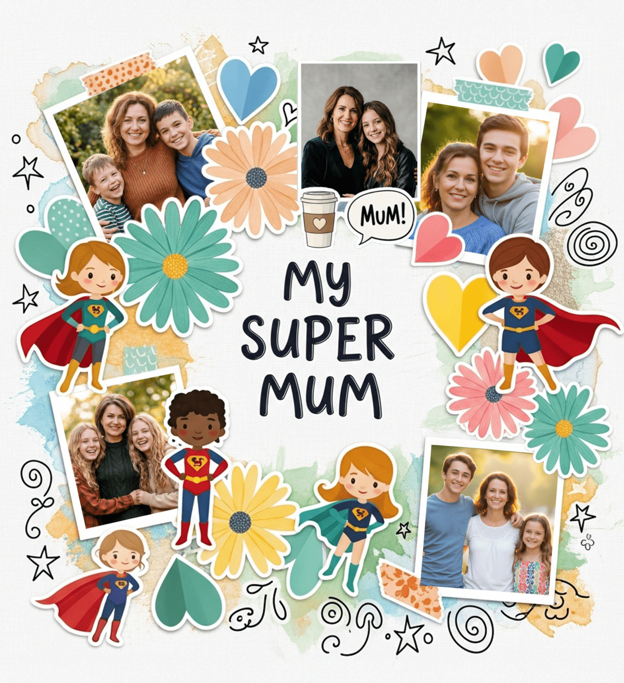 My mum is a planning superhero. She is good at multitasking. She can plan everyone's day. She even plans my weekend!