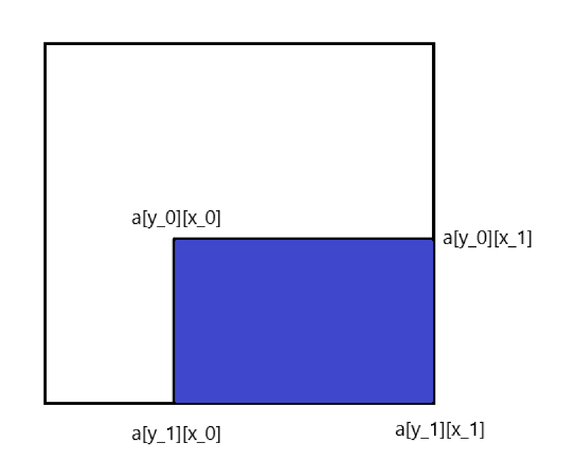 \(=a[y_1][x_1]-a[y_1][x_0]-a[y_0][x_1]+a[y_0][x_0]\)