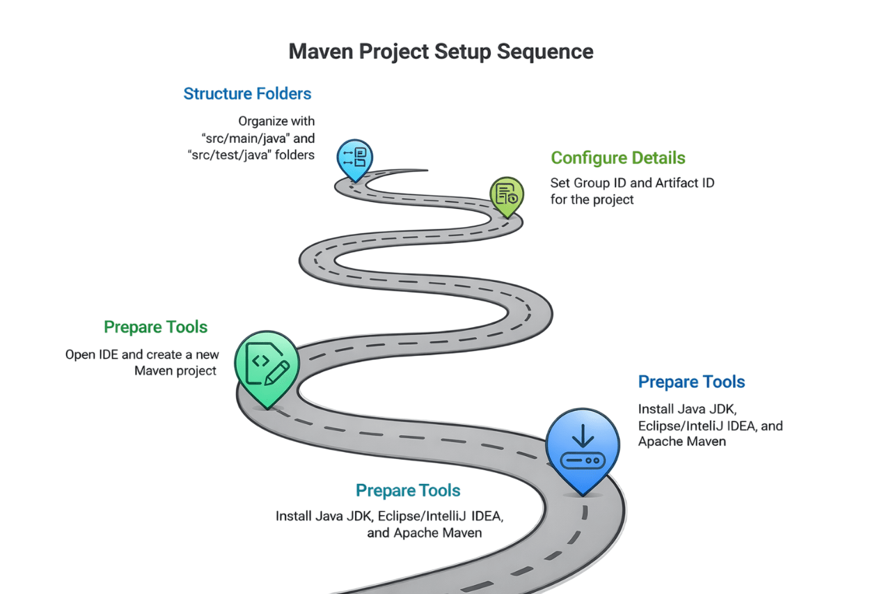 Install Java JDK 8+, Eclipse/IntelliJ IDEA, and Apache Maven
