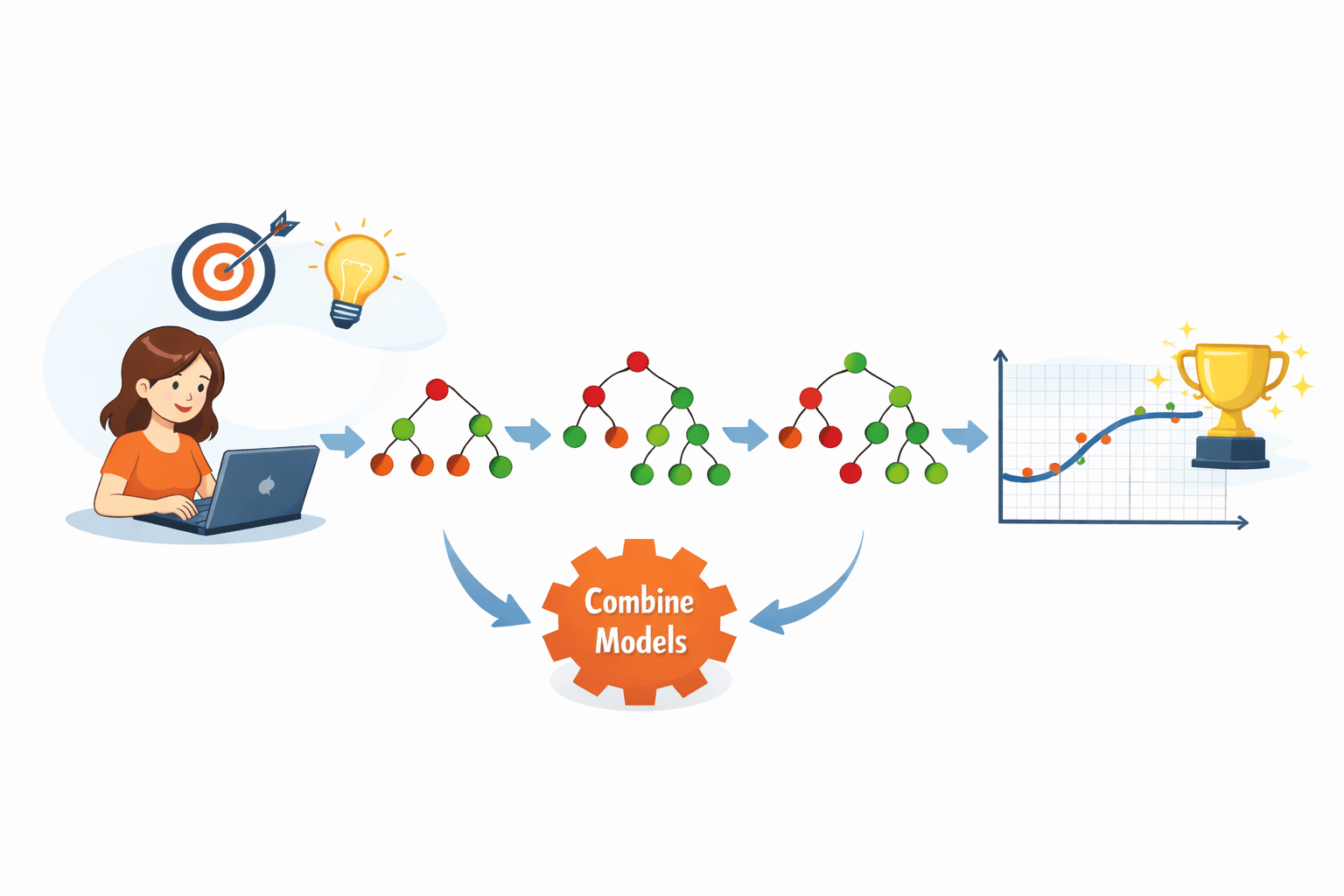 Each new model = fixes previous mistakes → perfect result step by step