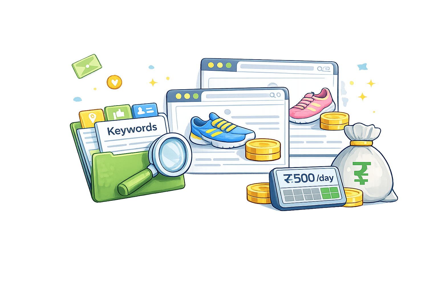 Example: Campaign = “Shoes Sale” with ₹500/day budget