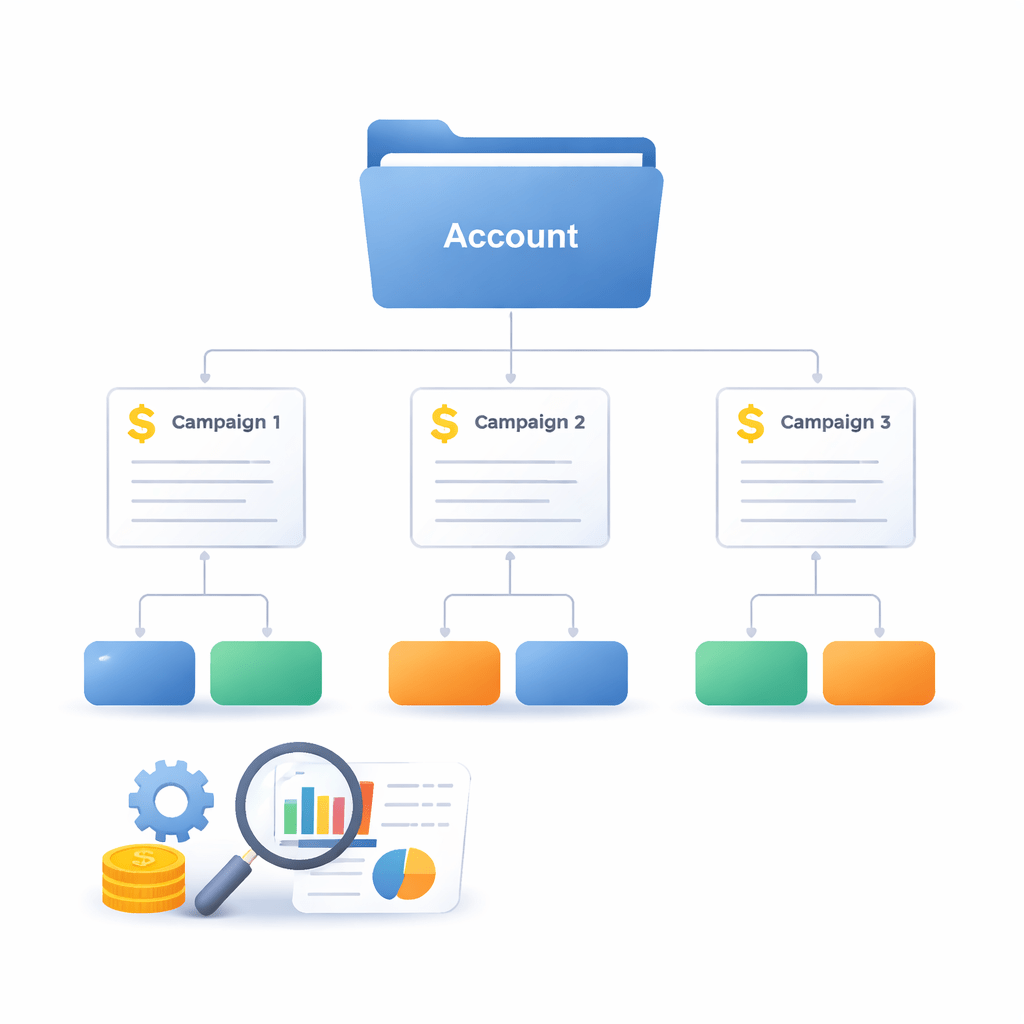 Structure: Account → Campaign → Ad Group → Ads