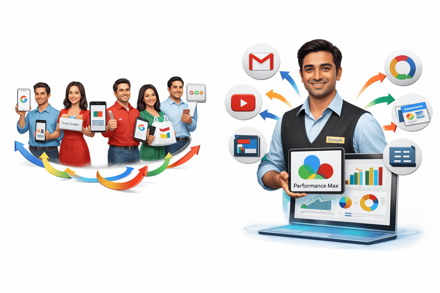 Instead of managing Search, Display, YouTube, Shopping, Gmail, and Discover separately, businesses can use one Performance Max campaign to handle everything together.