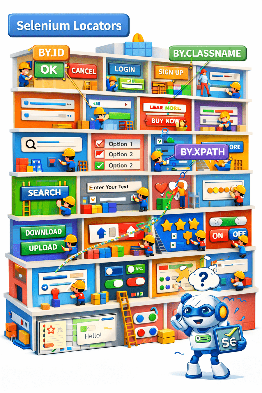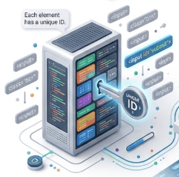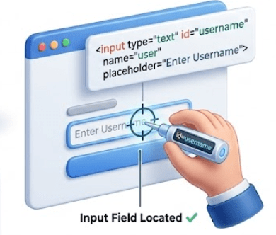 With locators, the script can interact efficiently, click buttons, type text, and read information—just like a visitor reaching the right office without confusion.