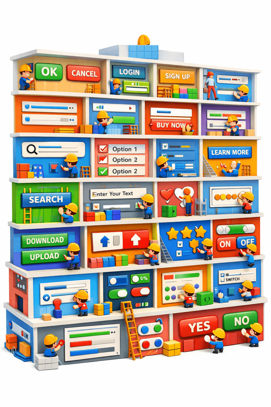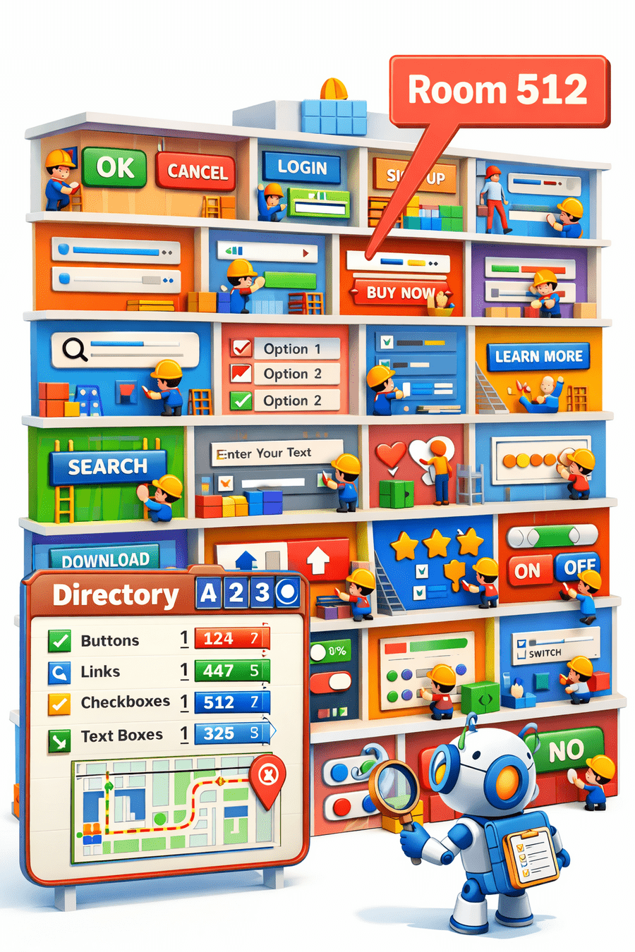 Each room represents a web element.buttons, text boxes, links, checkboxes.