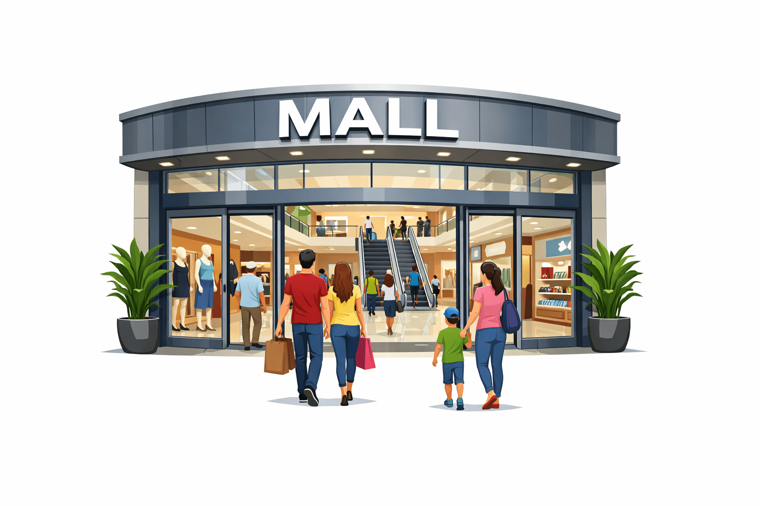 You enter the main entrance of the mall