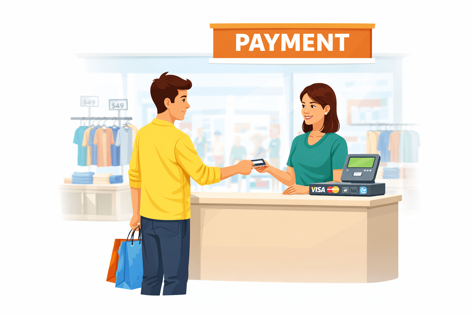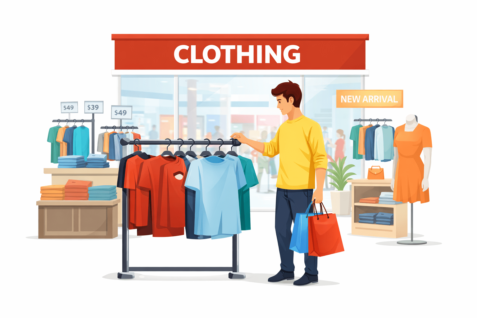 You then go to a different store inside the mall to buy clothes
