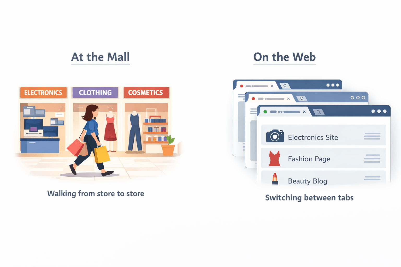 Moving between different stores in the mall