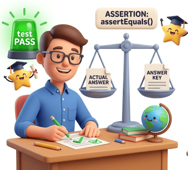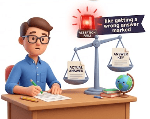 If assertion fails, the test immediately fails (like getting a wrong answer marked)
