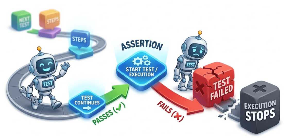 assertions act as the decision point of automation testing—they convert a script from just “running steps” into a meaningful test that can detect defects automatically