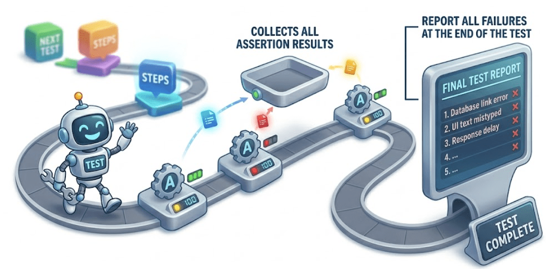 • Catch failures early by stopping execution when critical checks fail (hard assertions)