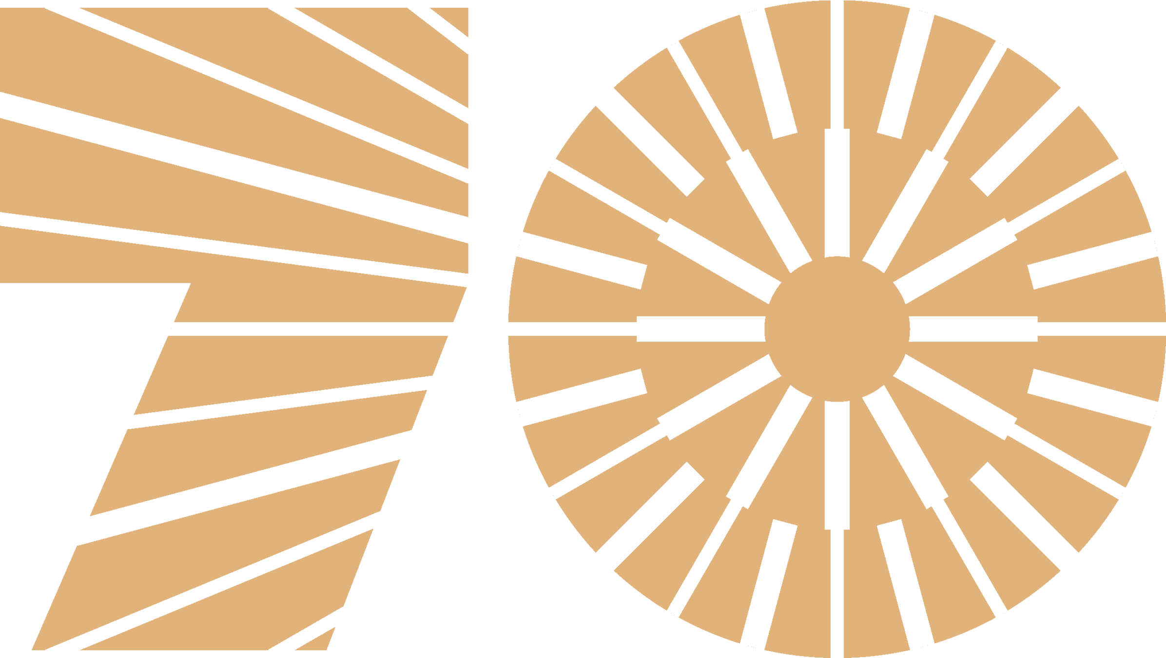 Material gráfico dos 70 anos: pastas, marca-páginas, banner, lonas, faixas, sacolas em papel e cartões-postais.