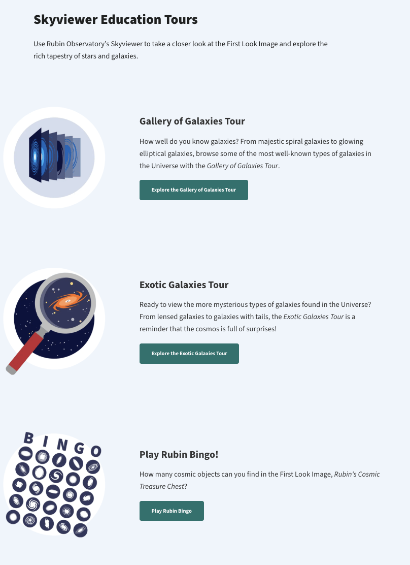 678 separate images taken in just over seven hours of observing time. Trifid nebula (top right) and the Lagoon nebula, which are several thousand light-years away from Earth. | NSF-DOE Vera C. Rubin Observatory