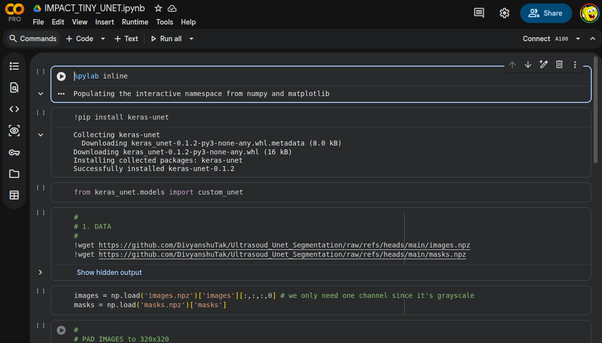 2. Setup the tiny UNet example for that data