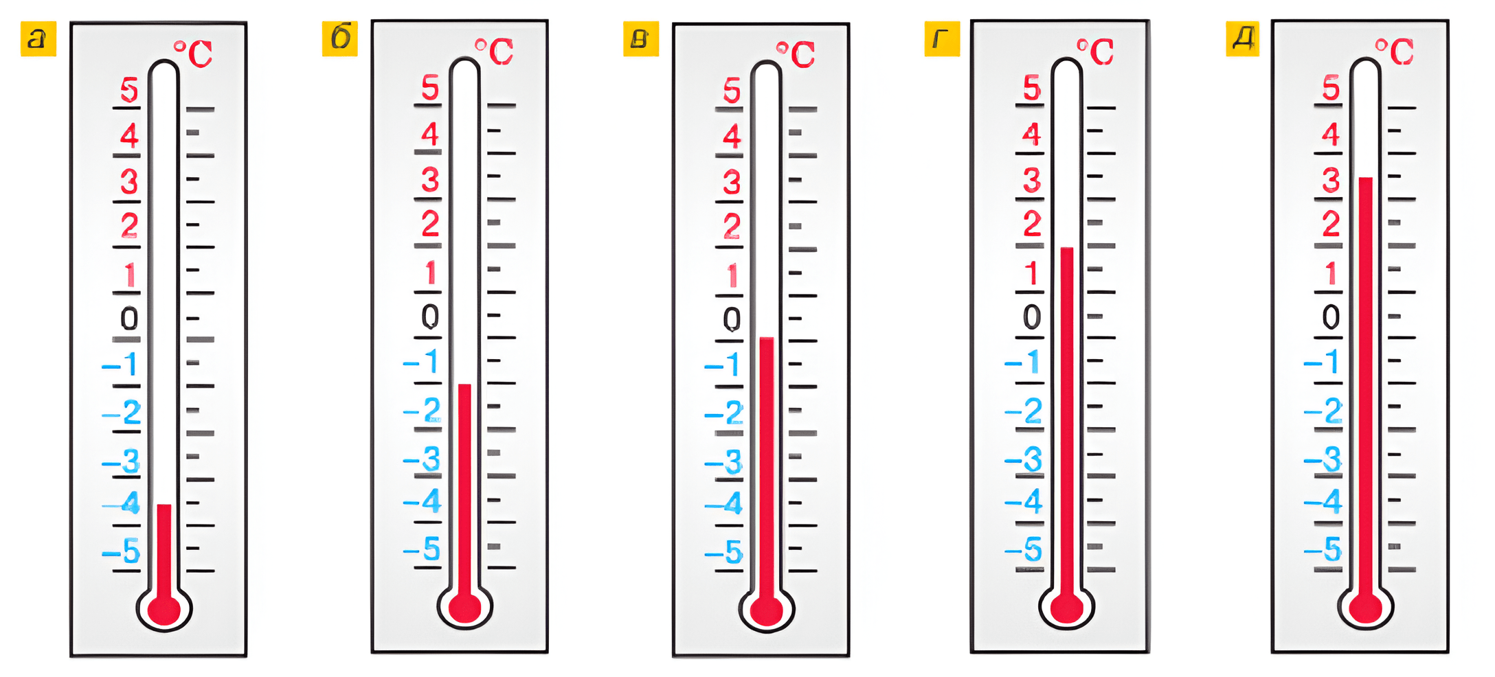Какую температуру покажет каждый из этих термометров, если температура изменится: