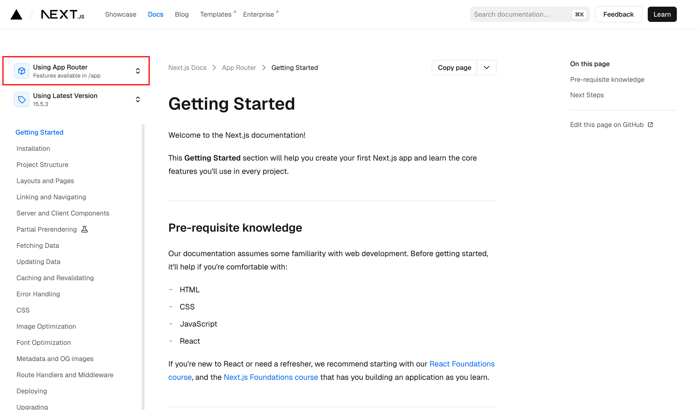 - ⚠️ Als je de documentatie van Next.js bekijkt, let er dan altijd op dat je App Router selecteert