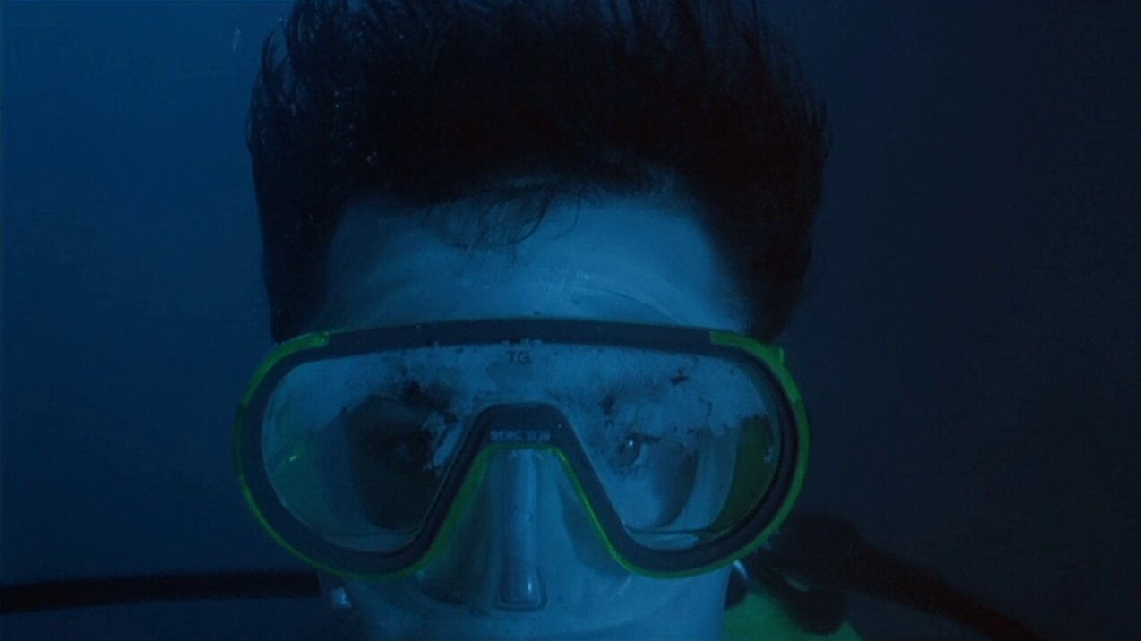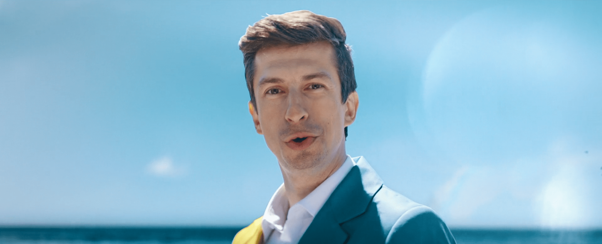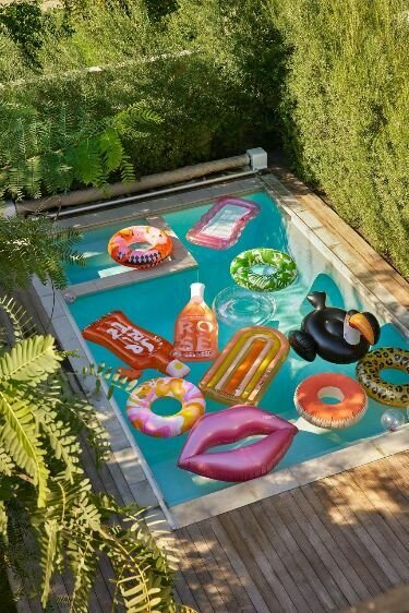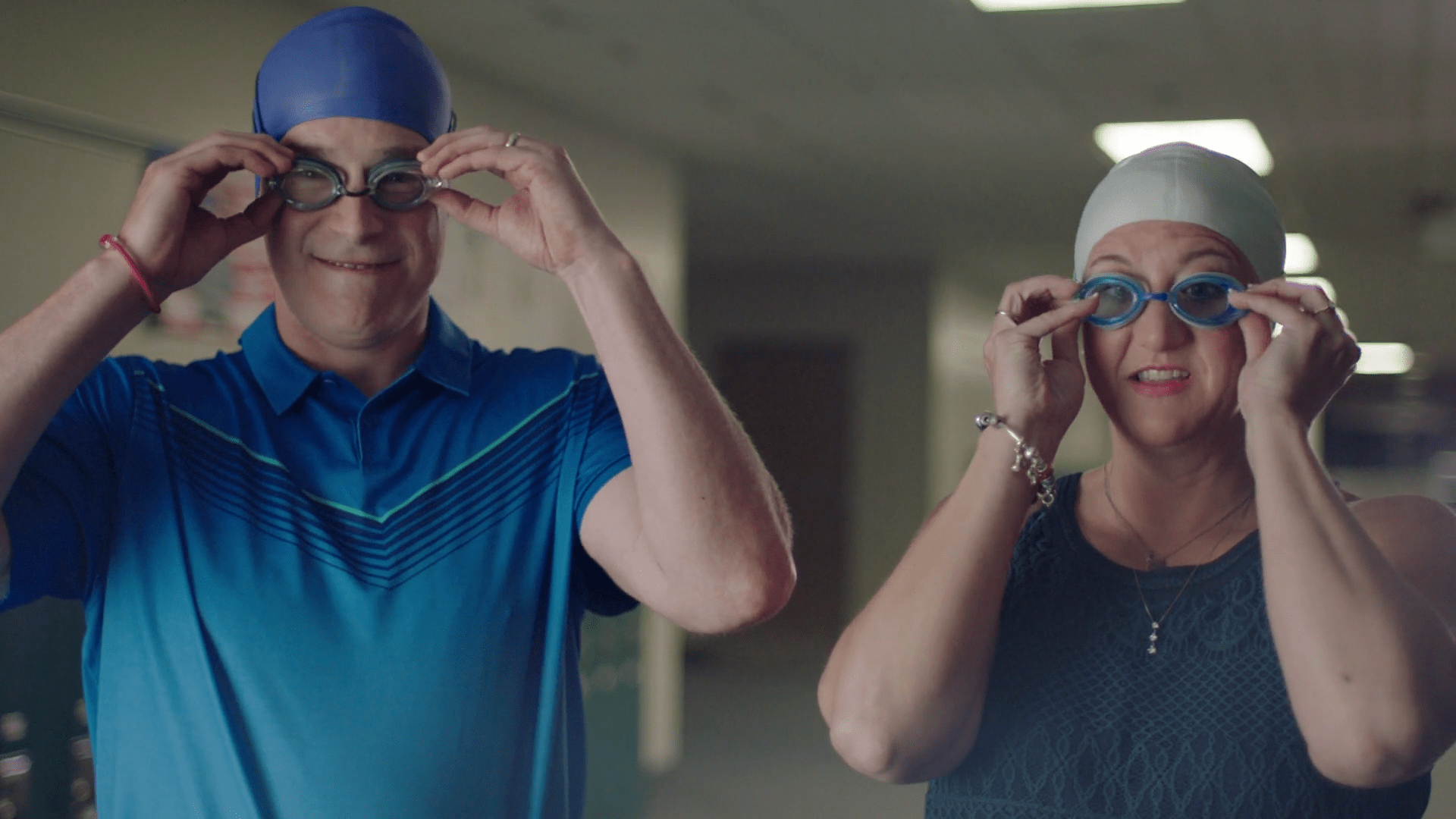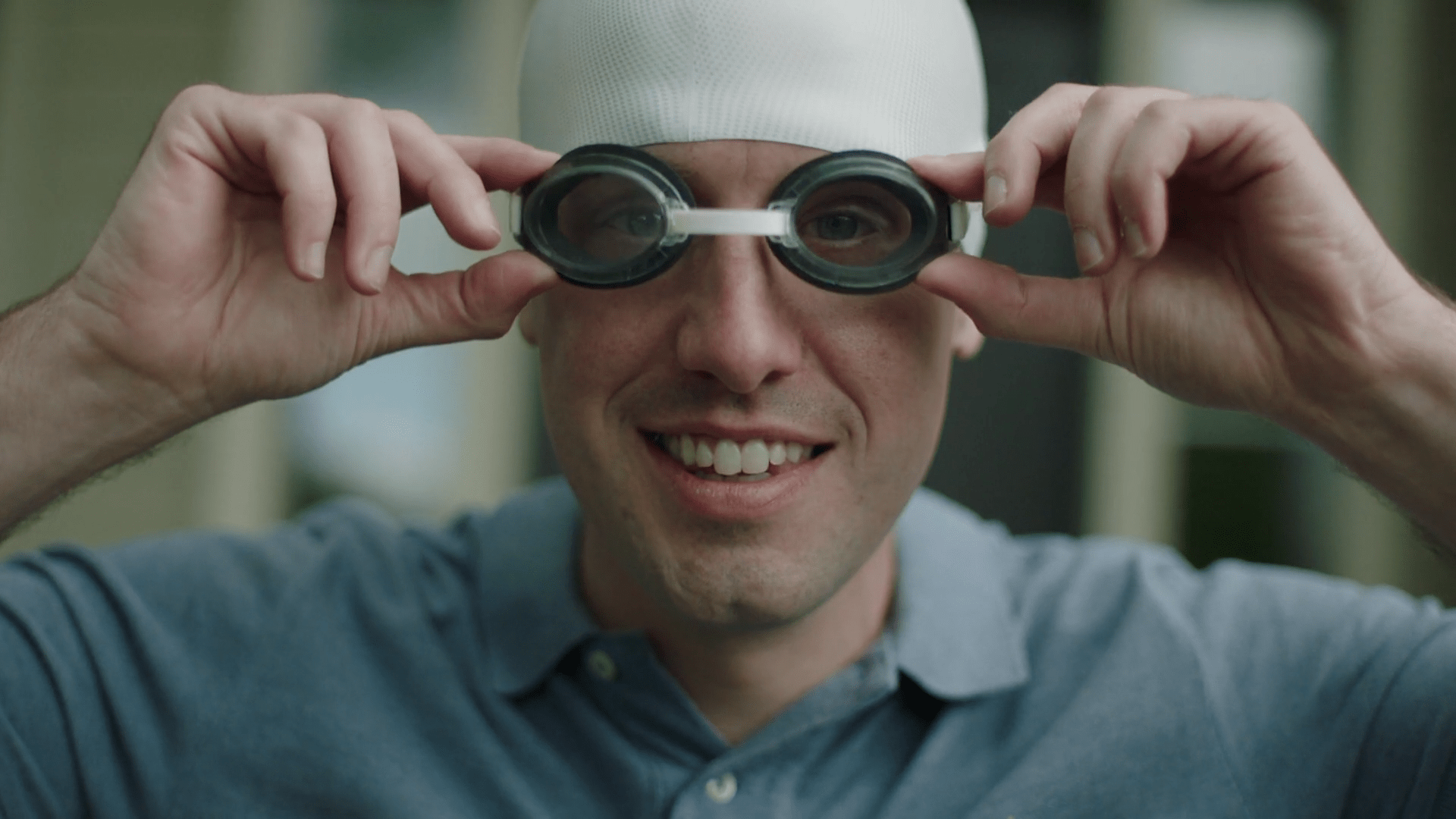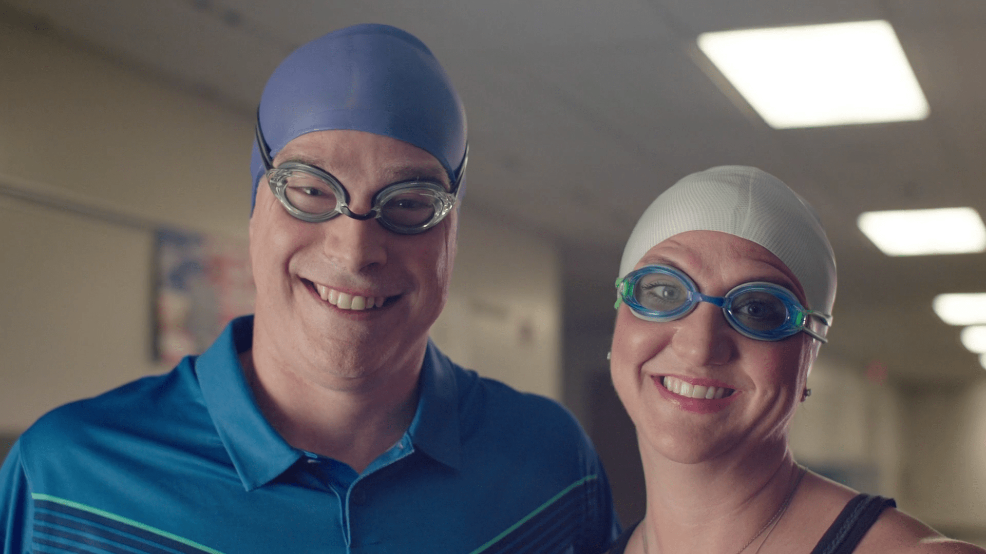 2-Con un plano aéreo, hacemos un zoom out que nos muestra una vista general de la piscina. Los flotadores tienen forma de X y O, moviéndose por el agua. En un momento, se forma una línea clara de flotadores en forma de O sobre el agua, y en uno de ellos está Víctor rascando su boleto. Un paneo nos traslada a otra localización.