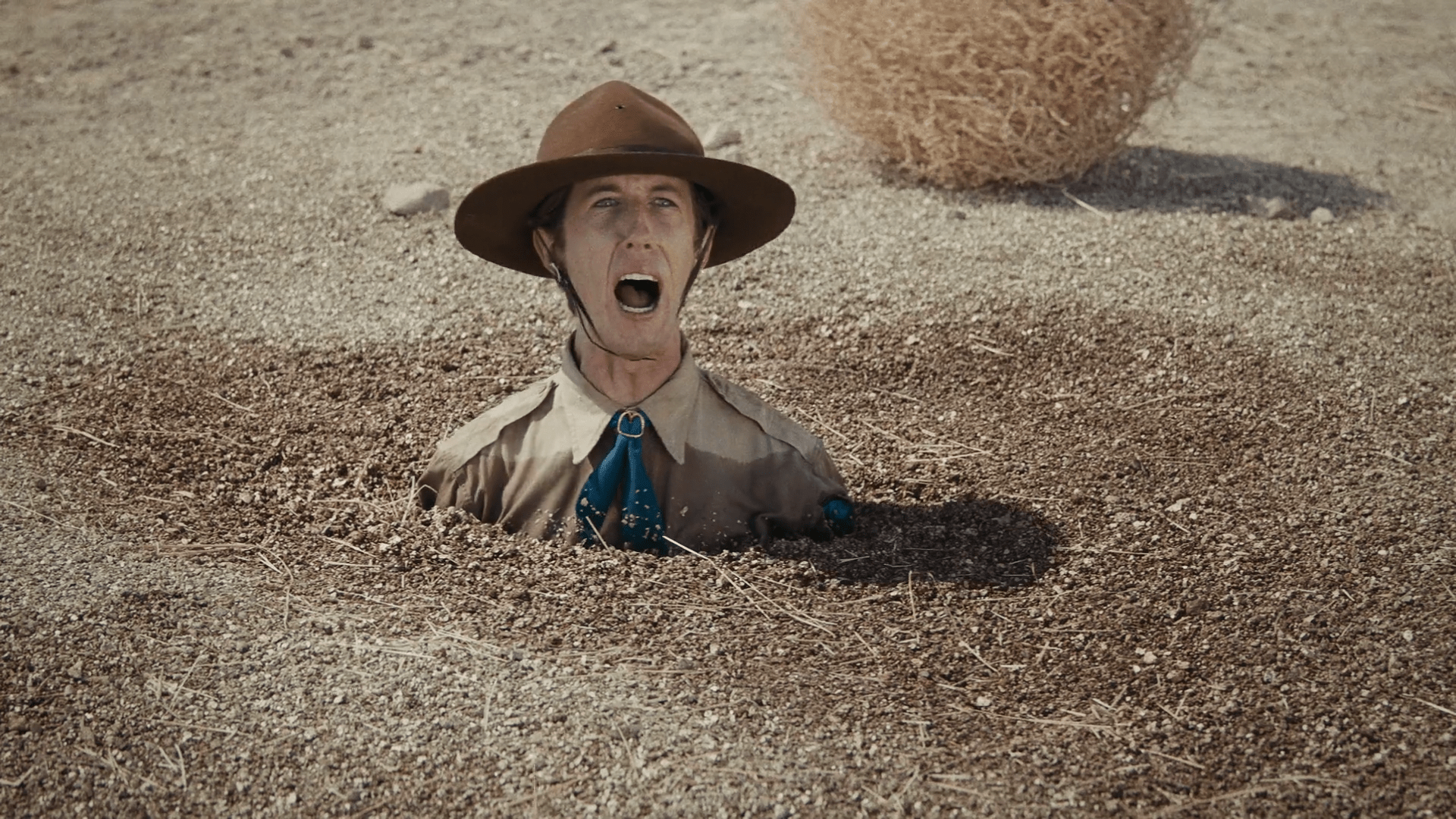 3- Varios pinceles expulsan la arena de algunos huesos enterrados. La cámara recorre cada brochazo que dan cada mano hasta llegar a la última que no está limpiando, sino que… ¡Está rascando el Rasca Estrellas!