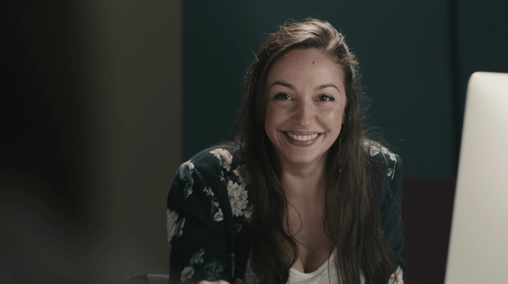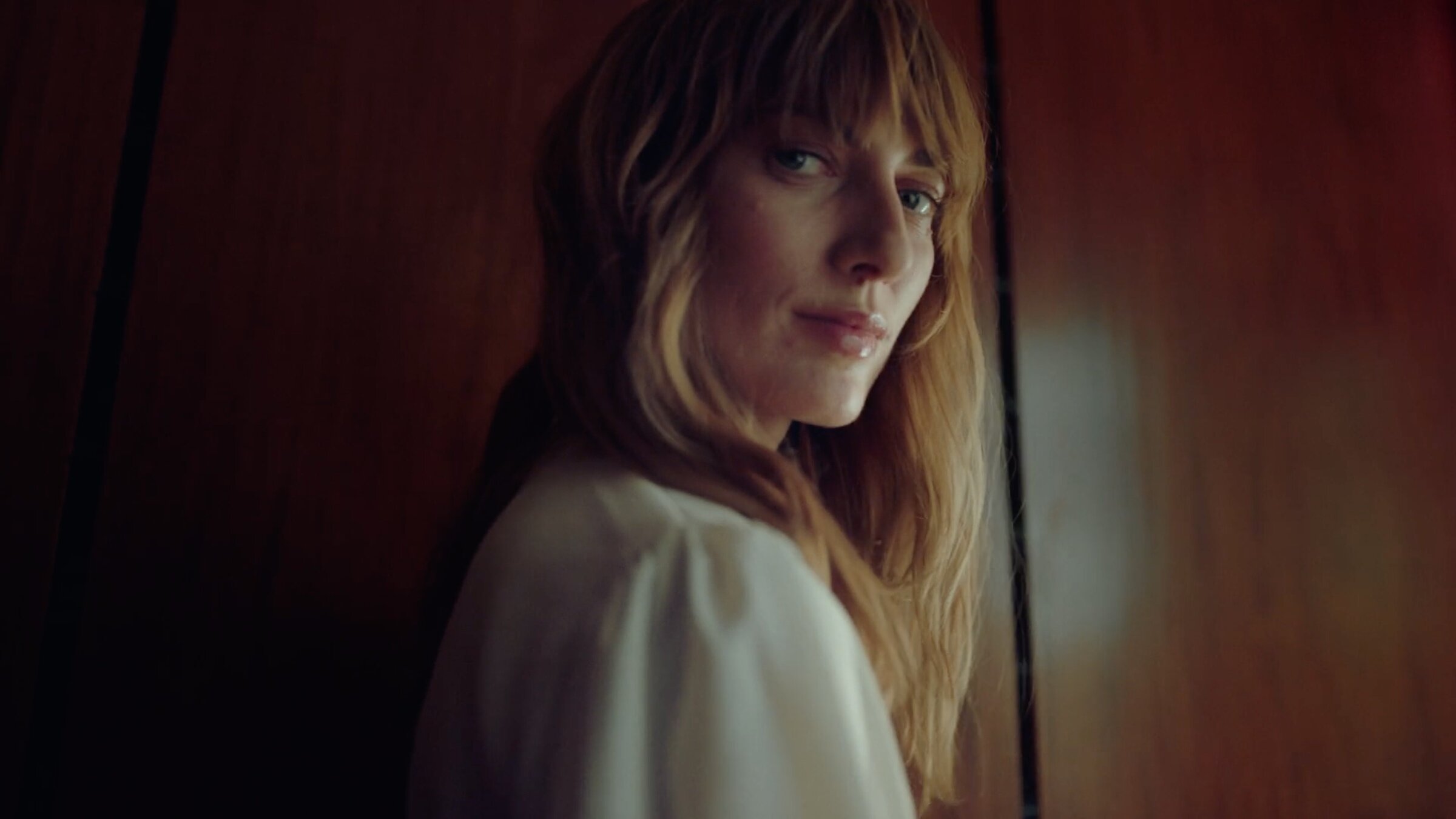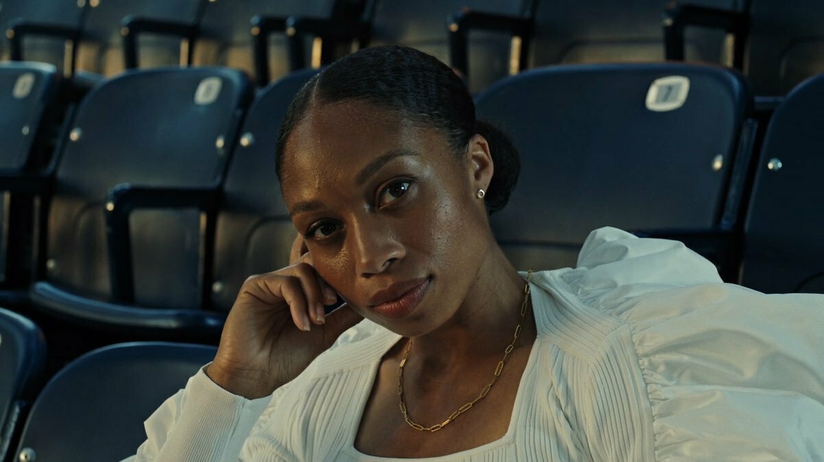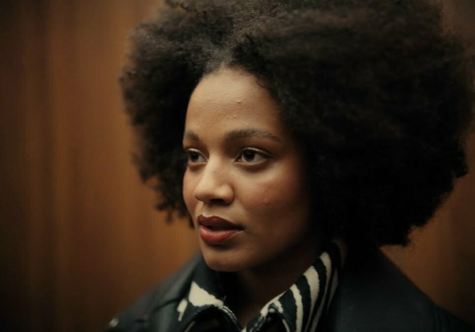 8- Nos cerramos en un momento íntimo entre ella y la bola de bolos. Le da un beso y comienza a dar vueltas como si estuvieran sobre un giratorio, pero ¡nada de efectos! Son ellas dos juntas, girando como en un paso de baile, como si estuvieran en un momento musical. La cámara también las rodea en un circular, acercándose cada vez más, hasta que la espalda de María nos ayuda a generar un corte que nos traslada a la espalda de un personaje nuevo.
