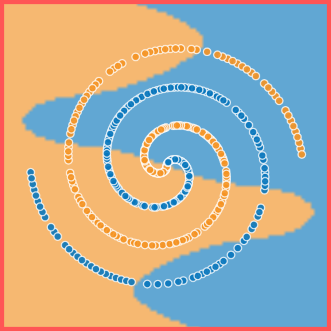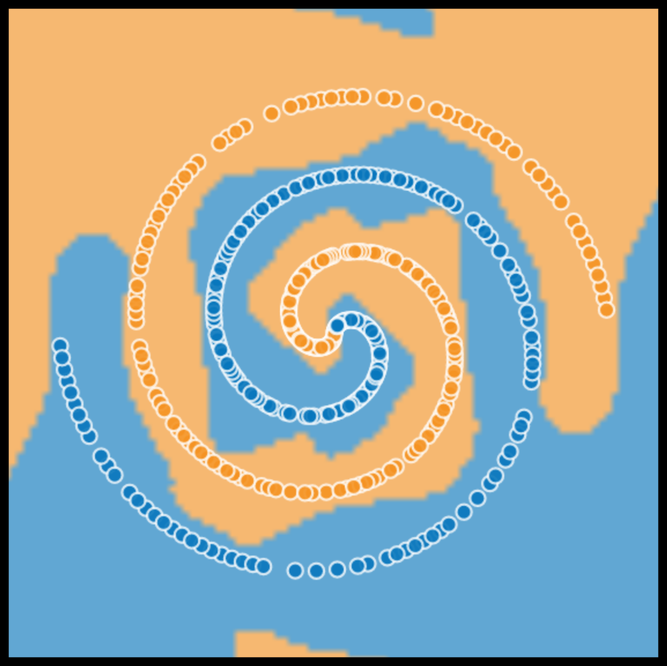 learn more complex feature of the blue plus orange data