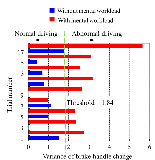 取第95百分位數以下之正常手閘操作並計算其變異數,得一判斷門檻值,並用以判斷駕駛是否處於異常狀態下
