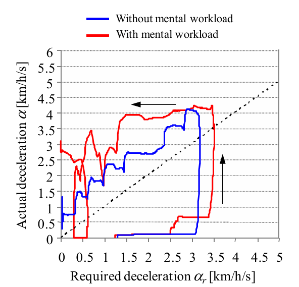 然而,在有其他心理負荷的情況下,駕駛較不容易平穩的操作手閘