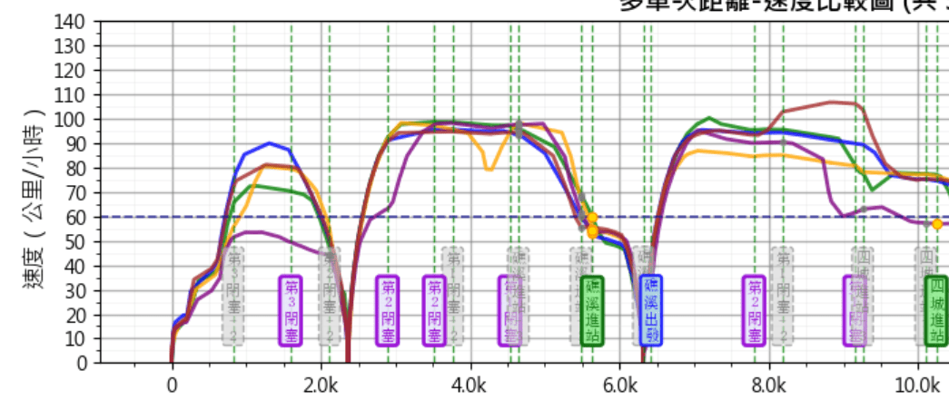 (1)ATP時間資料最小單位為秒,導致同一秒多筆數據或時間間隔不連續等情況發生,導致加速度計算易有誤差。若台鐵方面是否能提供加速度相關資料,將有助於分析正確性