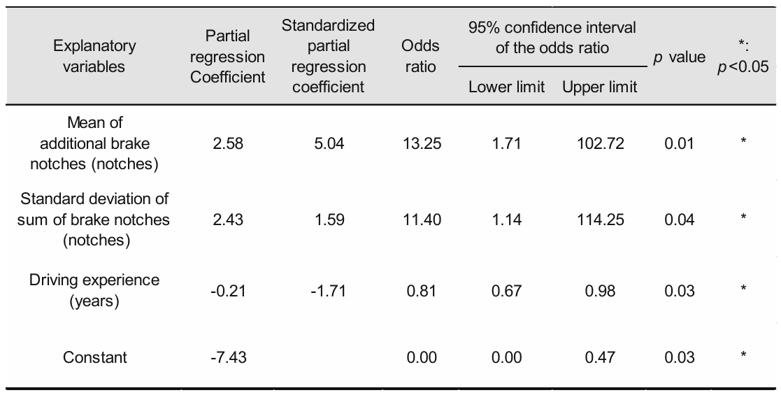 結果顯示,額外的手把操作量之平均值、手把操作值和的標準差及駕駛經驗年數對結果有較為顯著的影響