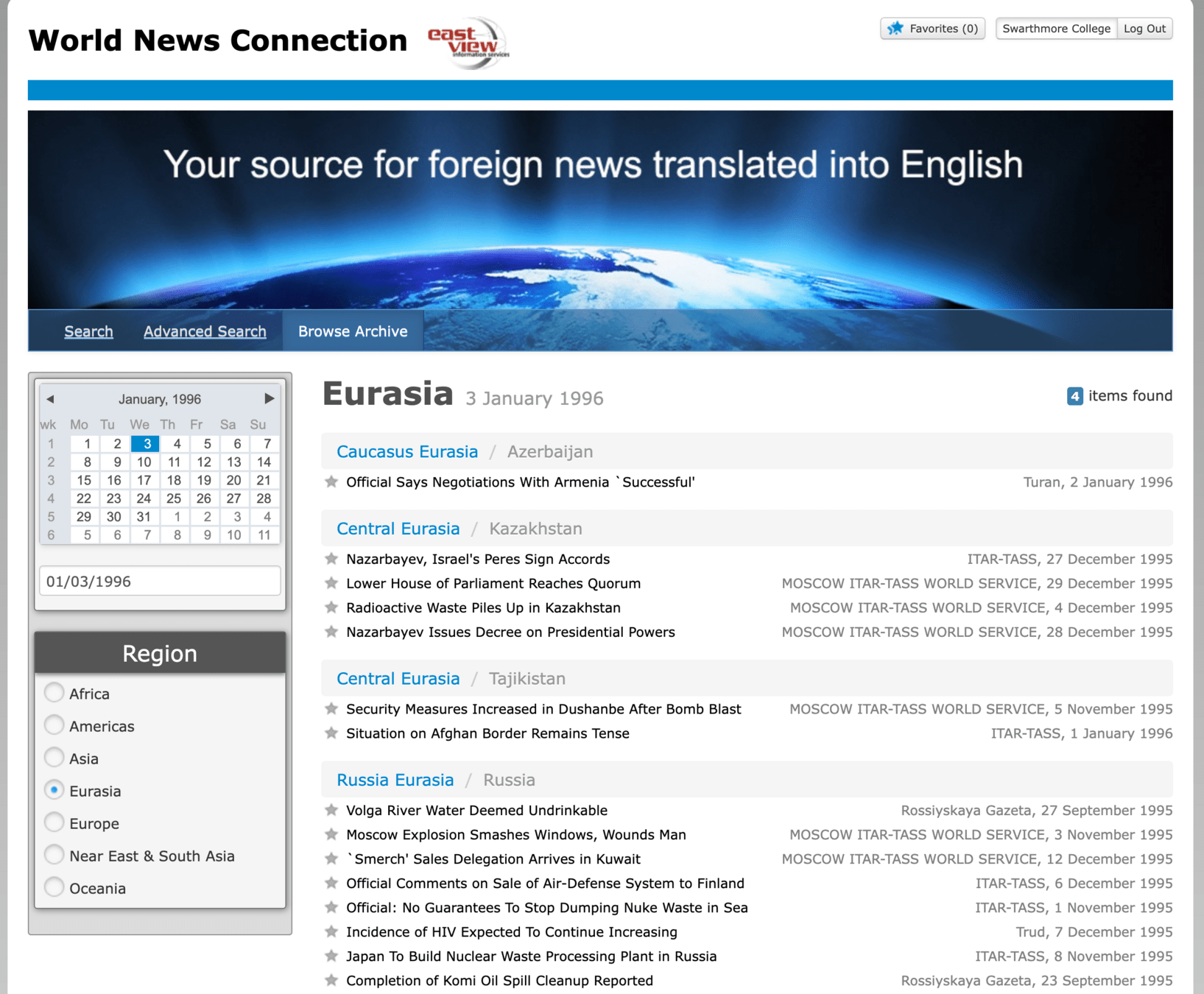 Searchable database of translated news articles and broadcasts from 1995-2013