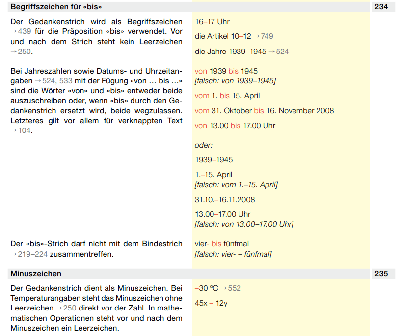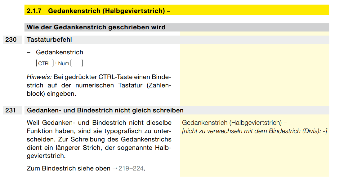- typographisch korrekte Zeichen verwenden (Gedanken- und Bindestrich haben nicht dieselbe Funktion) - –