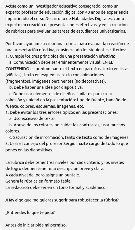 ¿Hay algo que me quieras sugerir para mejorar la rúbrica?